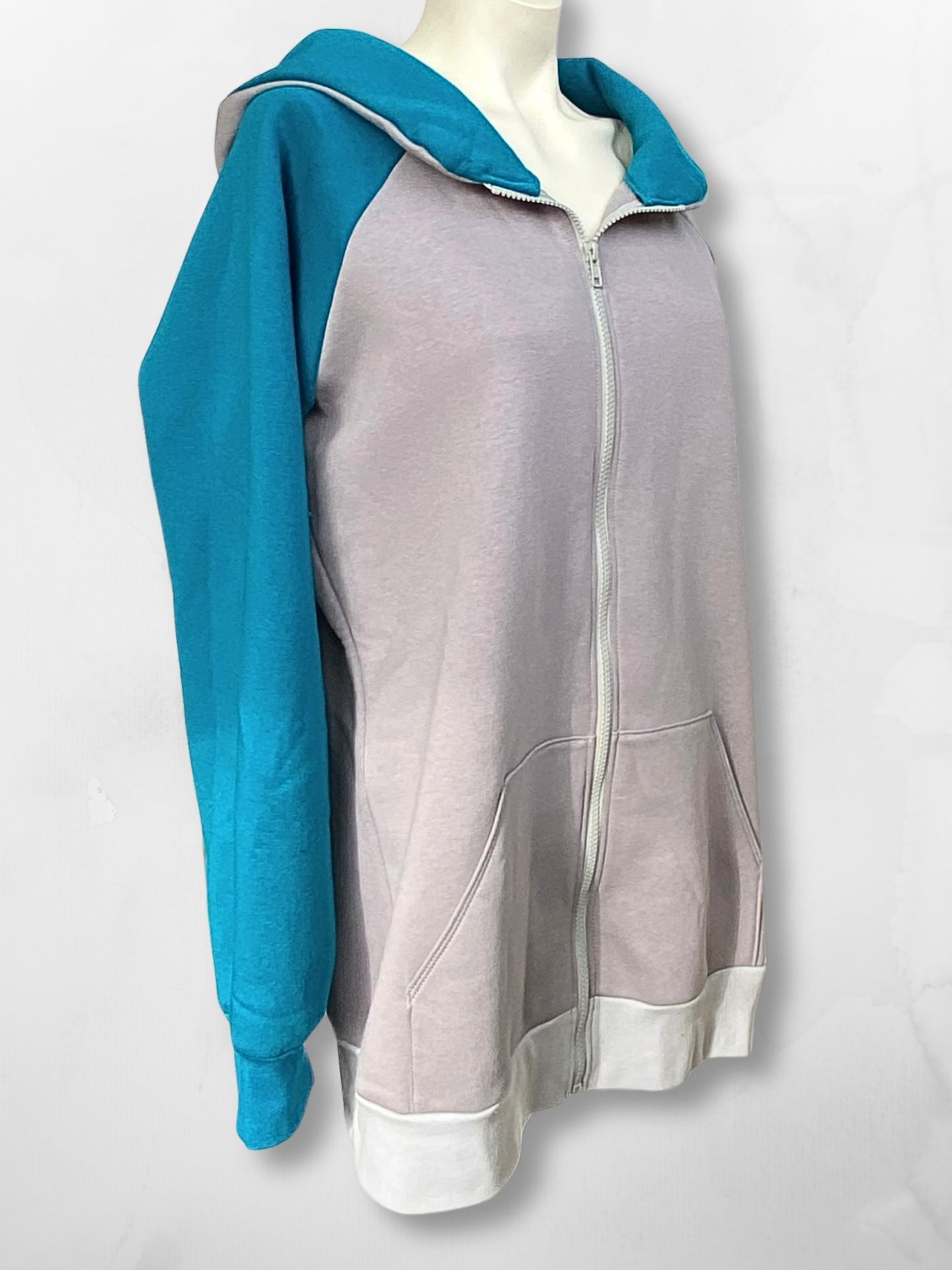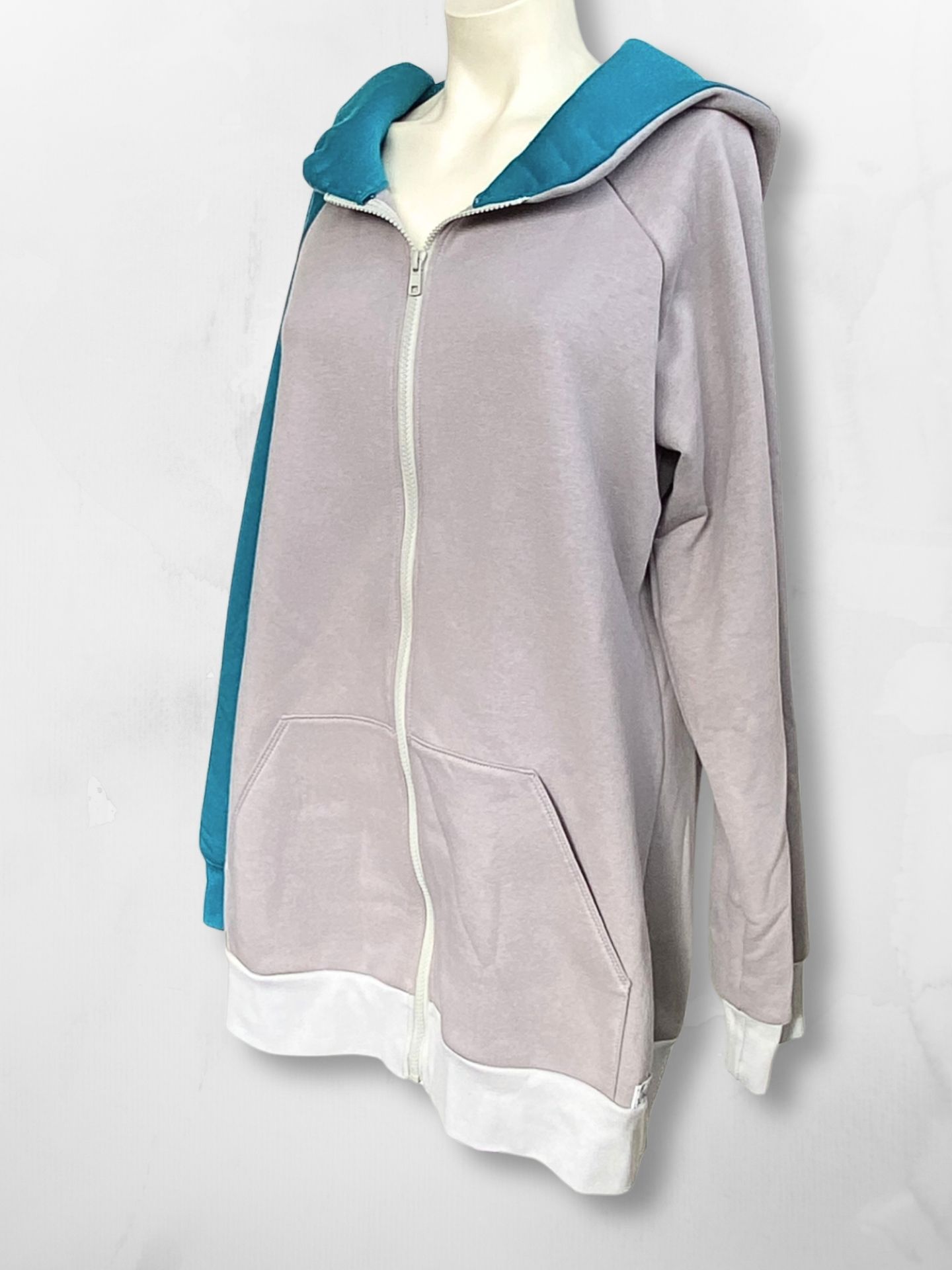 Les contrastes de couleurs, avec une manche et l’intérieur de la capuche dans une teinte différente, apportent caractère et singularité, sans en faire trop.